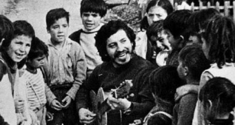 abbandona e la madre, Amanda, si ritrova a dover crescere da sola Victor e i suoi fratelli e sorelle. È una donna ottimista e molto forte: lei stessa cantante, insegna a cantare e a suonare la chitarra anche a Victor, e avrà una grande influenza sul suo futuro stile musicale. Amanda muore quando Victor ha solo 15 anni: egli allora entra in seminario, ma dopo soli due anni ne esce per andare ad arruolarsi nell’esercito, dove rimane per alcuni anni. Al suo ritorno a Loquen, Victor inizia a studiare la musica popolare cilena e ad interessarsi di politica. Si esibisce in pubblico sempre più spesso, e nel 1966 esce il suo primo disco intitolato semplicemente “Victor Jara”. “Manifiesto”, “Vientos del pueblo” e “El derecho de vivir en paz”, questi alcuni dei brani che lo consacreranno, specie l’ultimo divenuto emblema della musica folcloristica cilena nel mondo. Le sue canzoni sono piene d’amore per il suo popolo, ritratto come semplice e gran lavoratore: molte di esse sono attacchi contro le ingiustizie sociali e gli scandali politici. Victor diviene un elemento di spicco del movimento musicale conosciuto come Nueva Canción Chilena, coinvolto in molte attività rivoluzionarie.