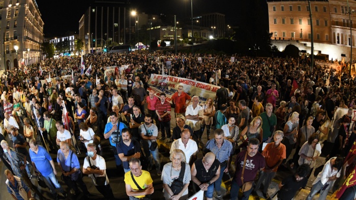 Il 15 settembre – durante uno sciopero di 24 ore, organizzato da sindacati e organizzazioni di massa hanno manifestato in massa ad Atene in piazza Syntagma – contro un nuovo disegno di legge antioperaio del governo “Nuova democrazia” che prevede una giornata lavorativa di 13 ore e 78 ore alla settimana eventualmente per più di un datore di lavoro; promuove l’estensione indiretta del lavoro fino a 74 anni e contratti a zero ore.