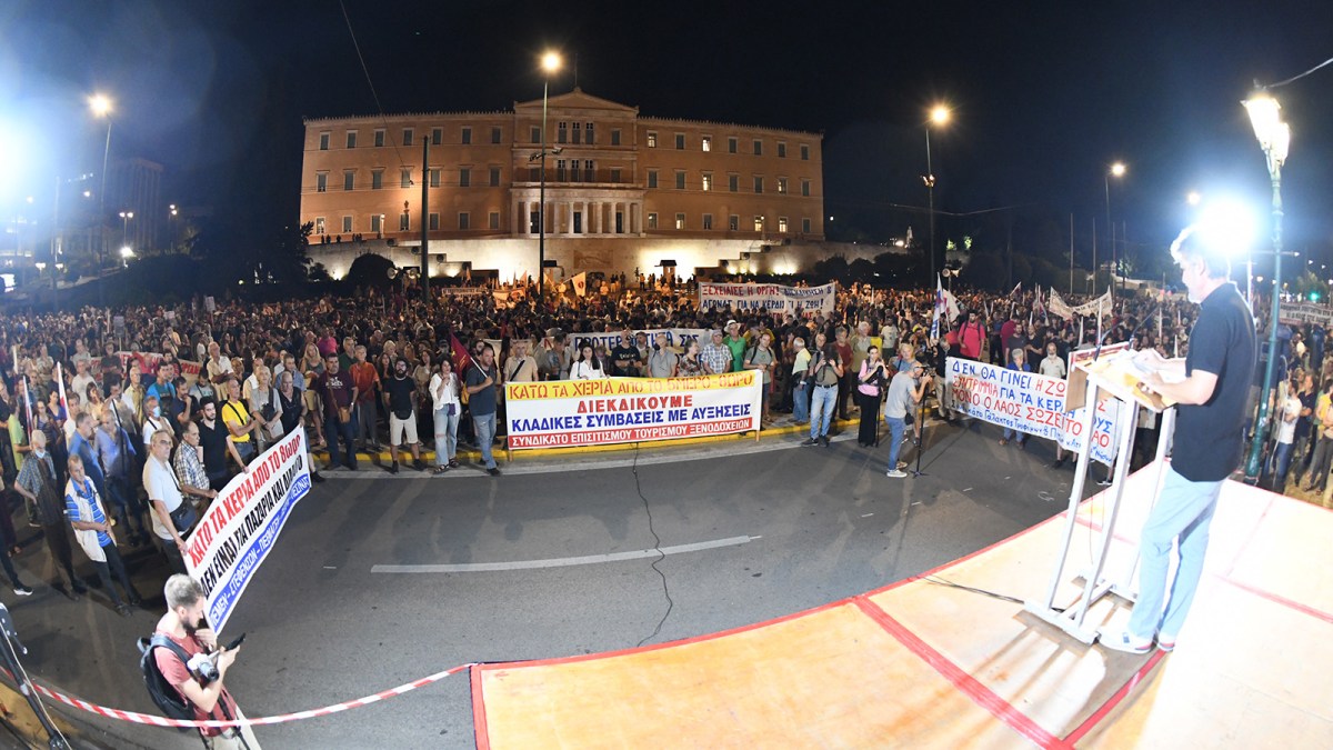 Il 15 settembre – durante uno sciopero di 24 ore, organizzato da sindacati e organizzazioni di massa hanno manifestato in massa ad Atene in piazza Syntagma – contro un nuovo disegno di legge antioperaio del governo “Nuova democrazia” che prevede una giornata lavorativa di 13 ore e 78 ore alla settimana eventualmente per più di un datore di lavoro; promuove l’estensione indiretta del lavoro fino a 74 anni e contratti a zero ore.