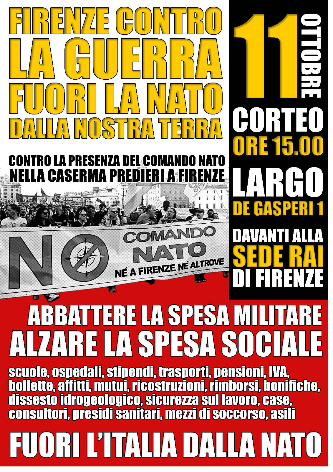 – h. 18.30 incontro – dibattito su militarizzazione nelle scuole e in ferrovia;- h. 21.30 corteo fino a via Ponchielli, luogo del disastro